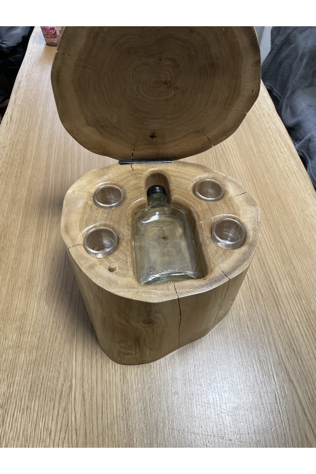 Ručně opracovávaný Dubový bar je skvělá dekorace do vašeho domova a nebo i k venkovnímu sezení, a nebo to může být i krásný dárek pro speciální události. Špalek je nalakovám tvrdým odolným lakem. Dubový bar je vysoký 20 cm a průměr 25-30 cm . Je dodáván včetně prázdné láhve a 4 kusů panáků. Doprava pouze přes PPL a DPD. Dekorativní dubový špalek časem mírně popraská tím jak vysychá.